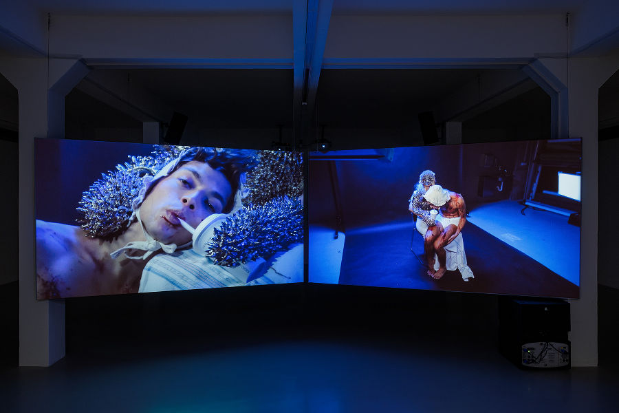 Nach seiner Massagelehre zog Leon Höllhumer nach Wien und studierte ab Mitte 20 an der Akademie der Bildenden Künste in der Klasse von Ashley Hans Scheirl, machte für eine Keramik-Klasse aber auch einen Ausflug an die Angewandte. Ursprünglich kam er über die Fotografie zur Kunst: „Fotografie funktioniert relativ schnell - das Bild ist sofort da, sobald man den Auslöser drückt", sagt Höllhumer, der seine fotografischen Arbeiten stets inszeniert und psychologisch aufgeladen gestaltet. Eine intensive, symbolträchtige Porträtserie mit dem Autor Ferdinand Schmalz entstand aus einer langen Zusammenarbeit und Freundschaft.